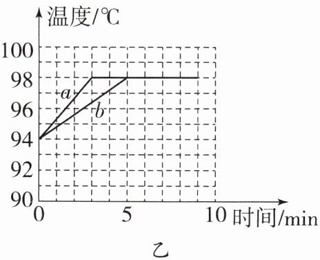 (1)某小组用相同的装置先后做了两次实验,绘出如图乙所示的 a、b 两条图线. 由图可知:实验中水的沸点为
