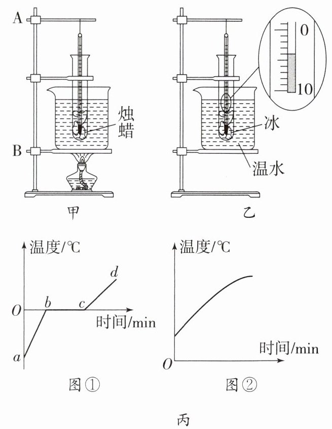 (3)根据实验数据作出两者温度随时间变化的图像(如图丙所示),其中烛蜡的图像是图______(选填“①”或“②”).