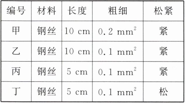 (1)用同样的力拨动甲和乙两根钢丝,发现拨动