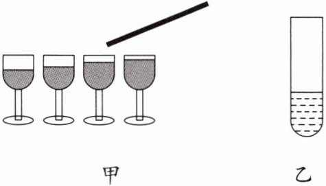 5. 如图甲所示,若用圆棒敲击盛水的高脚杯,水量变多,发声的音调将