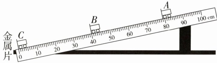 ① 把小车放在斜面顶端,记录该位置为 $ A $,金属片固定在斜面底端 $ C $,测出车头到金属片的距离 $ s_1 $ 和小车从斜面顶端 $ A $ 由静止滑下到撞击金属片的时间 $ t_1 $;