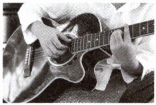 5. 如图所示,小刚在艺术节上用吉他弹奏优美的乐曲。对于吉他发出的声音,下列说法正确的是(