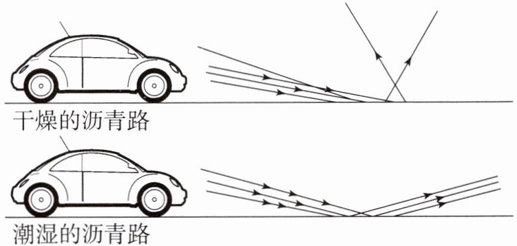 )A.潮湿的路面更容易发生光的漫反射