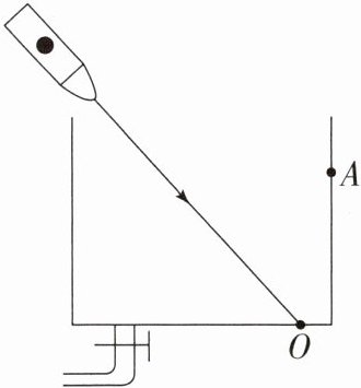 11. 如图所示,一支固定好的激光笔向空水槽底部固定点O打出一束激光。向水槽内加水使水面上升至A点,此时光斑在O点