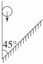 12. 一平面镜与竖直的墙面成$$ 45^{\circ} $$角且固定不变,如图所示,小球以1m/s的速度沿墙面竖直向下匀速下落,则小球在平面镜里的像以