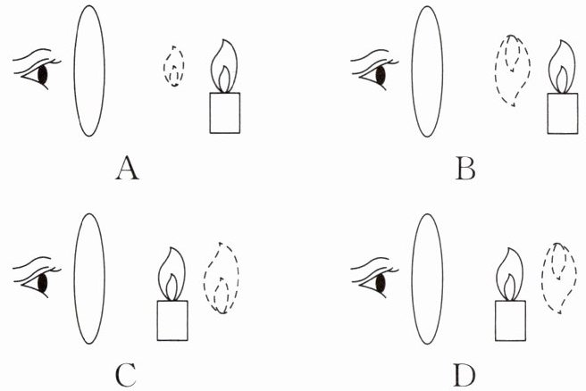 1. 在“探究凸透镜成像的规律”的实验中,当烛焰位于距离凸透镜1倍焦距内时,人眼观察到烛焰成像的情形是图中的(