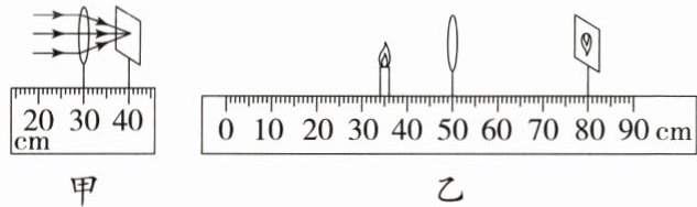 10. 在做“探究凸透镜成像的规律”的实验中,小敏所在的小组利用如图甲所示的装置,测出凸透镜的焦距,正确安装并调节实验装置后,在光屏上得到一个清晰的像,如图乙所示.下列说法正确的是 (