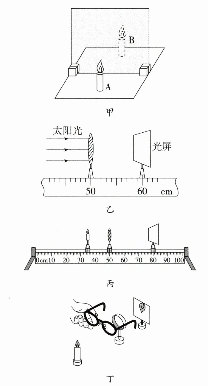 (5)如图丁所示,光屏上出现烛焰清晰的像,取走老花眼镜,屏上的像变模糊了,此时要使屏上的像变清晰,需向