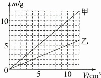7. 甲、乙两种物质的质量$m与体积V$的关系图像如图所示,由图像可知(