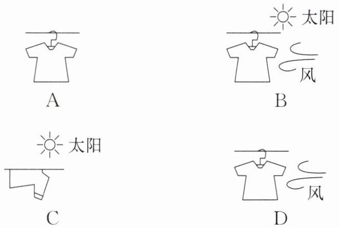 3. 一件湿衣服按下列四种方式晾晒,最容易晾干的是 (