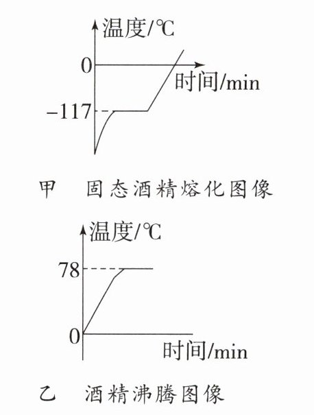 3. 如图所示,甲、乙分别是酒精在标准大气压下熔化和沸腾时温度随时间变化的图像,下列说法正确的是 (