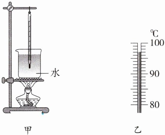 (1) 图乙是小园加热到第 $ 4 \min $ 时温度计的示数,为