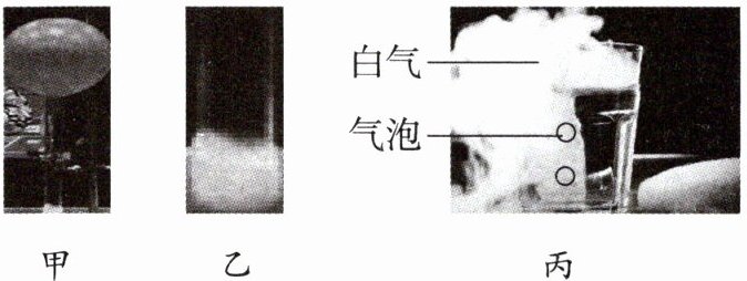 (2)取一块干冰放入常温下的水中(如图丙所示),杯中的水立即“沸腾”了,水中有大量气泡上升,并且在杯口出现大量“白气”,对于此现象下列说法正确的是