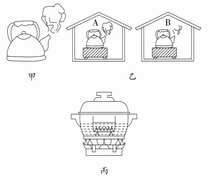 (选填“A”或“B”)房间的气温比较高。(4)生活中常把碗放在锅里的水中蒸食物,如图丙所示,当锅里的水沸腾以后,碗中的水