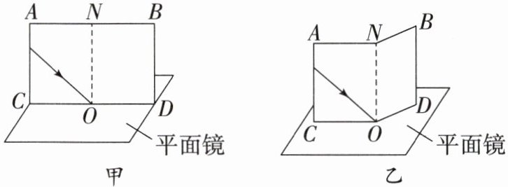 8. “探究光的反射定律”的实验装置如图甲所示,平面镜放在水平桌面上,标有刻度(图中未画出)的白色纸板ABDC能绕垂直于CD的轴ON翻转,在纸板上安装一支可在纸板平面内自由移动的激光笔。