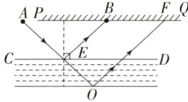 6. 如图所示为水位测量仪的示意图,A点与光屏PQ在同一水平面上,从A点发出的一束与水平面成45°角,方向不变的激光,经水面反射后,在光屏上的B点处形成一个光斑,光斑位置随水位变化而发生变化。若水位下降0.5m,则光斑B______(选填“向左”或“向右”)移动。