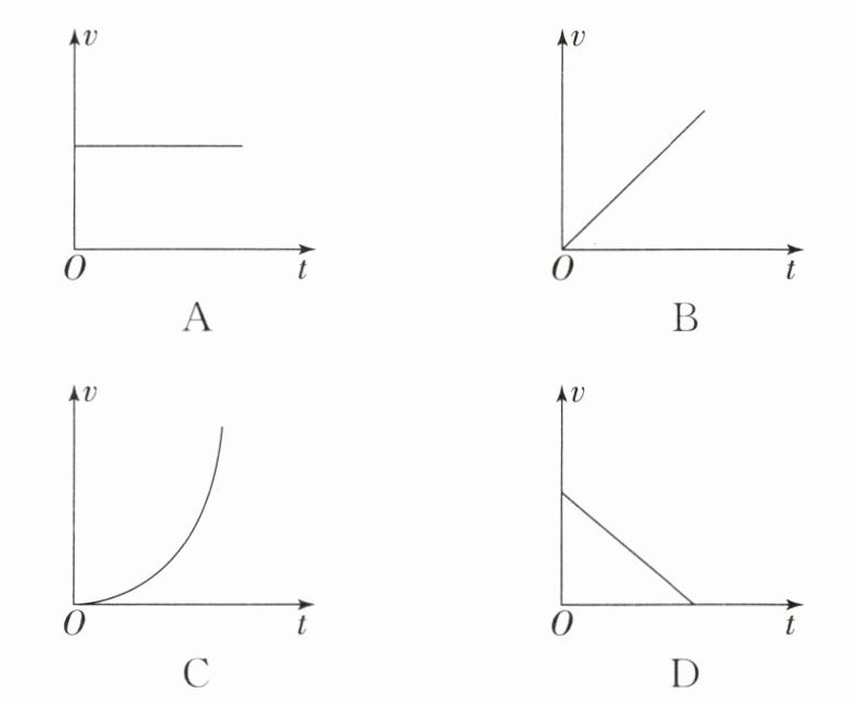 解析:选 A.在四个选项中,横轴均表示时间,纵轴均表示速度;做匀速直线运动的物体,速度一定,不随时间变化,故 v-t 图像是平行于横轴的直线,故 A 符合题意,B、C、D 不符合题意.故选 A.