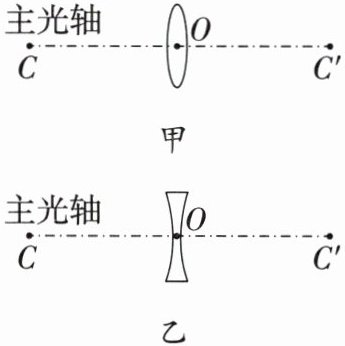 )A.主光轴就是通过透镜中心任意一条直线,图中 $ CC' $ 是其中一条主光轴