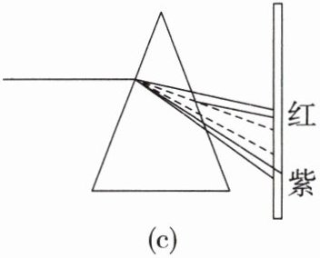 (3) 联想到如图(c)光的色散现象,如果分别用红光和紫光测同一个凸透镜的焦距,用