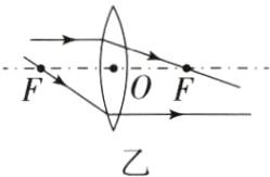 (2) 如图乙所示,在图中画出光线经凸透镜折射后的光路图.