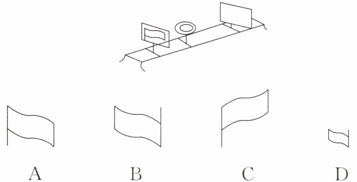 4. 如图所示,发光二极管组成的红旗图案放在凸透镜之前,与凸透镜的距离在1倍焦距和2倍焦距之间,则红旗在光屏上所成清晰的像可能是(