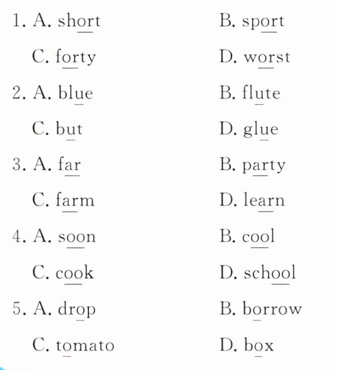 Ⅳ. 选出下列每组单词中画线字母或字母组合发音不同的一项。