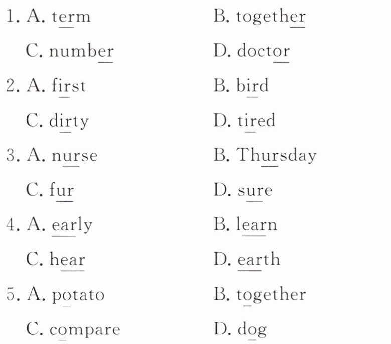 Ⅳ. 选出下列每组单词中画线字母或字母组合发音不同的一项。