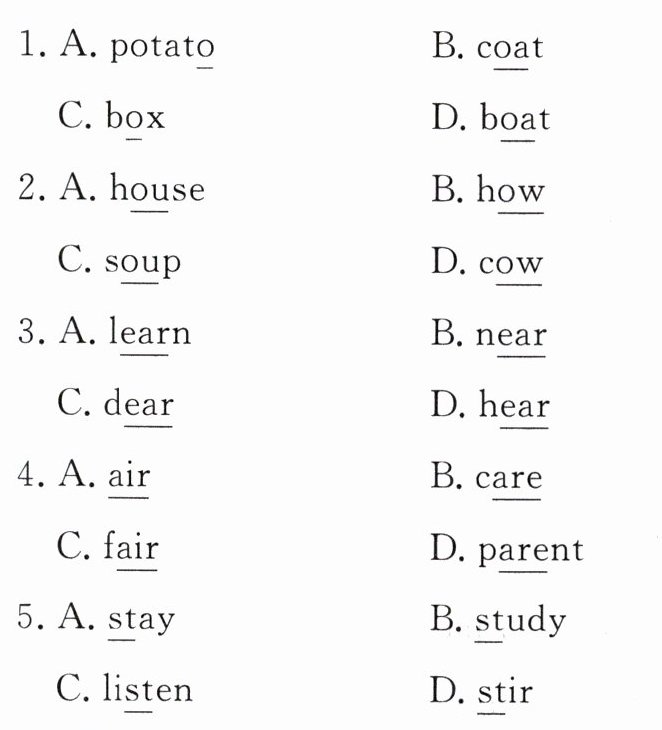Ⅳ. 选出下列每组单词中画线字母或字母组合发音不同的一项。