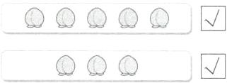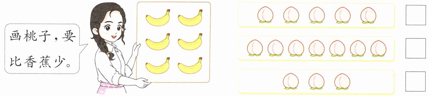 (女孩说话:画桃子,要比香蕉少。旁边有6个香蕉图形)