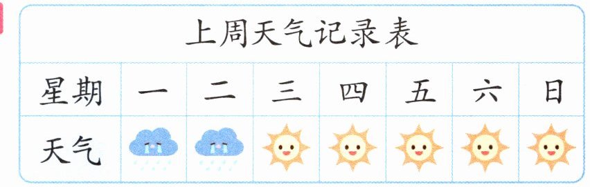 | 天气 | ☁️ | ☁️ | ☀️ | ☀️ | ☀️ | ☀️ | ☀️ |