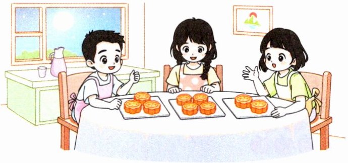 (2)每2块月饼装一盒,这些月饼可以装( )盒,还剩( )块。