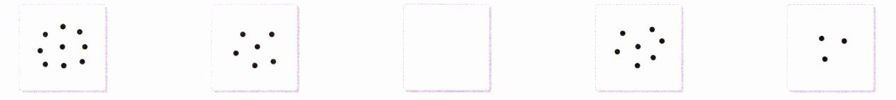 2. 从左数起,第3张卡片上的“•”比第4张多,但又不是最多的。你知道这张卡片上有多少个“•”吗?画一画。(2分)