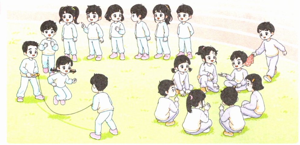 玩丢手绢的再添上几人,就和玩跳绳的同样多?