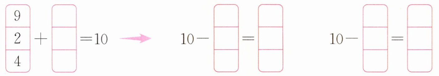 4 先把加法算式补充完整,再写出对应的减法算式。