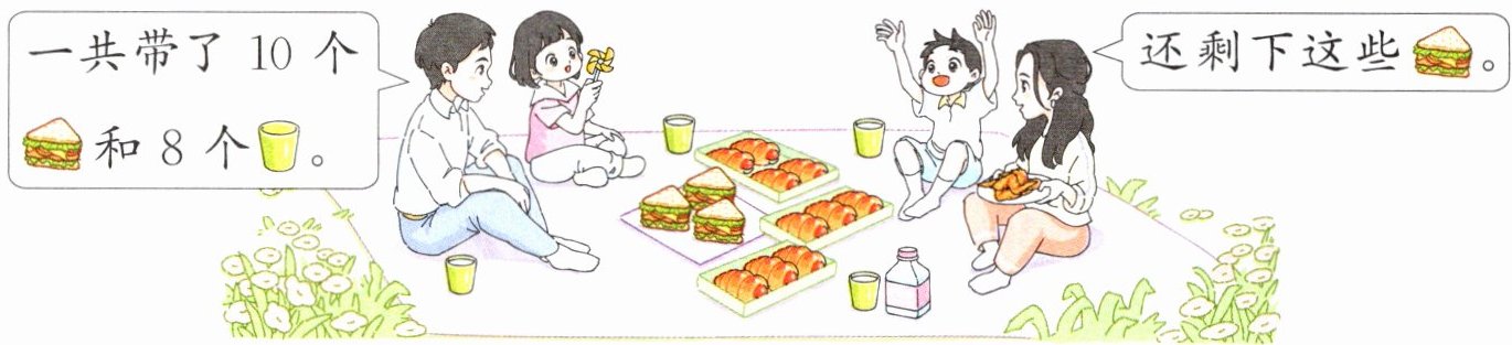 和8个(杯子图标),右边:还剩下这些(三明治图标))