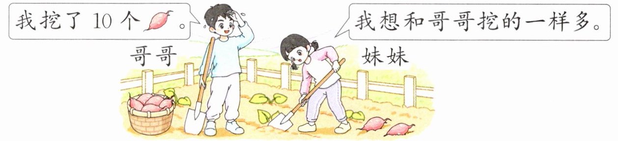 (哥哥妹妹挖红薯图片,哥哥:我挖了10个,妹妹:我想和哥哥挖的一样多)