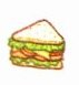 (1)原来有(□)个(三明治图标),还剩(□)个,已经吃了多少个?