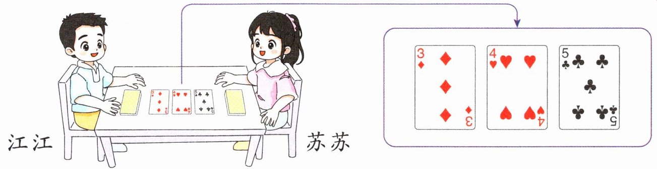 接下来,当江江出( )时,可以拿走两张牌;当江江出( )时,可以拿走三张牌;当江江出( )时,可以拿走四张牌。