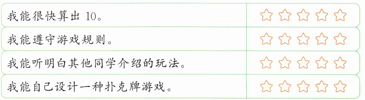 | 我能自己设计一种扑克牌游戏。 | ☆☆☆☆☆ |