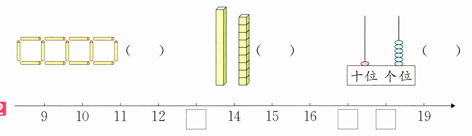 (2)19 由( )个十和( )个一组成,比它小 1 的数是( )。
