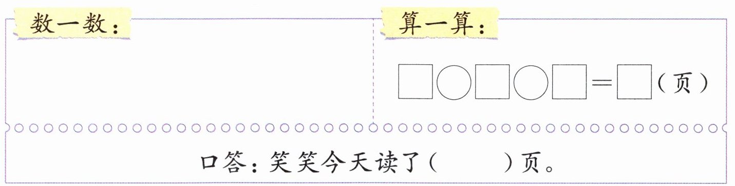 (1)数一数:8,9,10,11,12,13,14,15,16,17,18。 算一算:18 - 8 + 1 = 11 口答:笑笑今天读了
