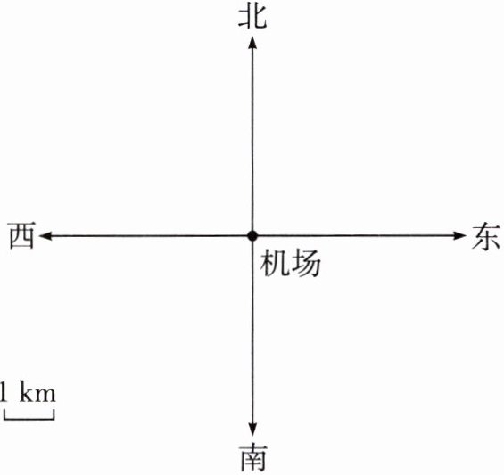 2. B飞机:以正北方向为起始边,向左(西)偏转$30^{\circ}$,量取2 cm长度确定位置。