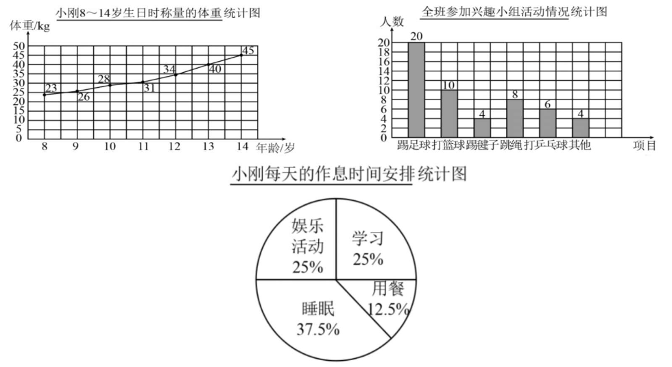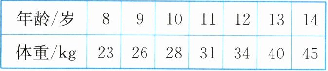 (1)小刚 8~14 岁生日时称的体重如下表。(4 分)
