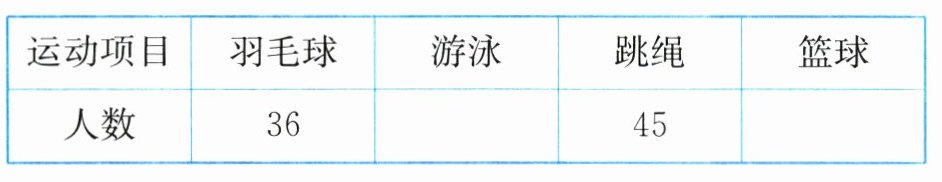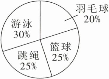 (1)同学们最喜欢的运动项目是游泳,篮球与跳绳的爱好者一样多。