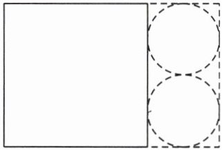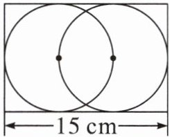 如图,在一张长方形铁皮上剪下两个半径为 $3\ cm$ 的圆形所在的小长方形后,正好还剩下一个正方形。求长方形的周长。