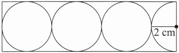 1. 如图,在长方形中有大小相等的 3 个圆和一个半圆,已知圆的半径是 $2\ cm$,长方形的周长是多少厘米?