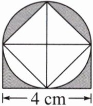 $3.14×2^{2}÷2-\frac{1}{2}×4×2=2.28(cm^{2})$ $4×2-3.14×2^{2}÷2=1.72(cm^{2})$ $2.28+1.72=4(cm^{2})$