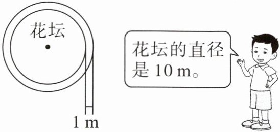 3. 有一个圆形花坛,现要在这个花坛的外面铺一条宽1m的石子路(如图)。