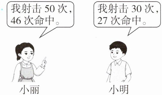 小丽:$\frac{46}{50}×100\% =92\% $ 小明:$\frac{27}{30}×100\% =90\% $ $90\% <92\% $ 小丽的命中率高。