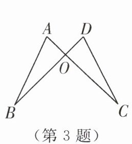 3. 如图,$ AC $ 与 $ BD $ 相交于点 $ O $,要用“ASA”证明 $ \triangle AOB \cong \triangle DOC $。